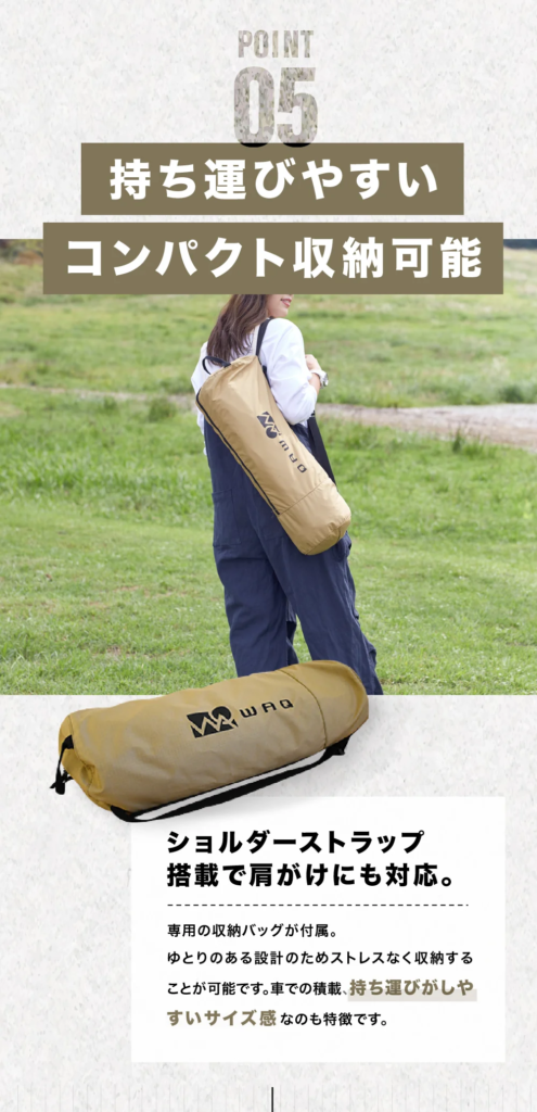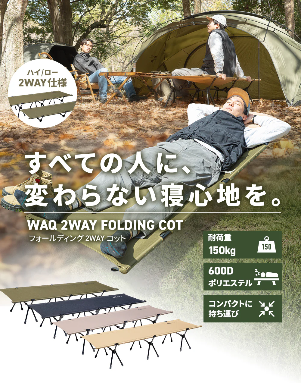 高さ調整ができるコットは全体でも人気ですが、コスパを抑えた2WAYモデルは選択肢が限られるため、WAQは魅力的な存在です。