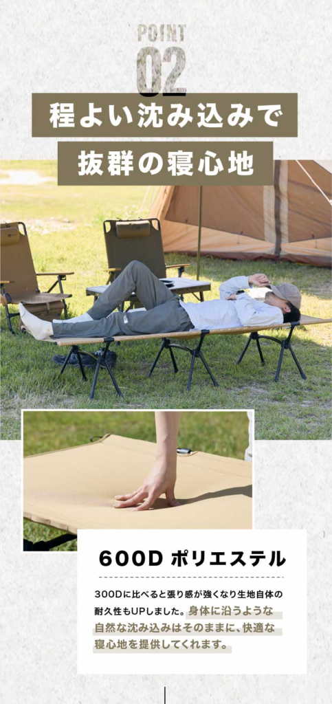 また Timber Ridge キャンプコット のような簡単な一体式コットもあります。