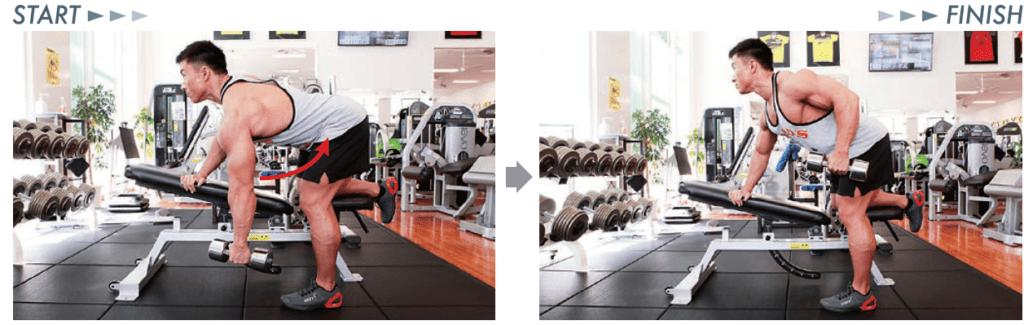 ① ワンハンドローイング(背中の厚み)