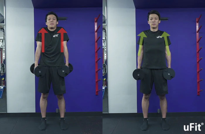 • 肩をすくめるように持ち上げる